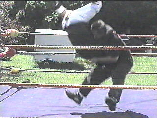 The next MWF event, MWF Spring Fling 2000, saw a first in the MWF. With opponents for Dr. Destruction few and far between, and the Hard Corps itself seeing little action, Dr. D defended the MWF Hardcore title in a 3-against-1 match against 3 of the Magees - Magpie, Pappy Toadstool, and Little Richard Magee. Despite enduring a tremendous beating at the hands of the Magees, Dr. Destruction managed to persevere and pin & eliminate each man until he was the last man standing to defend the MWF Hardcore title. ("The title shot was offered to Brett Krueger, but I believe he 'didn't think that was good idea'. Probably for the best, since he would have tripped over himself and fallen on my bad knee and broke it." Could you imagine ME losing the MWF Hardcore title to BRETT KRUEGER?!!?!?!")