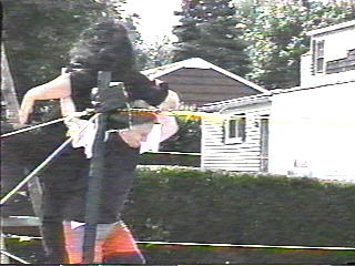 Mike Speedo is high in the air as he executes the froggie-splash from