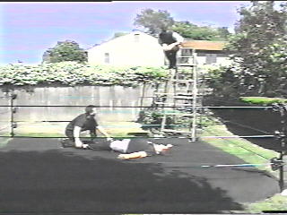 Mike Speedo catches Brett Krueger on a ladder, and brings him down to